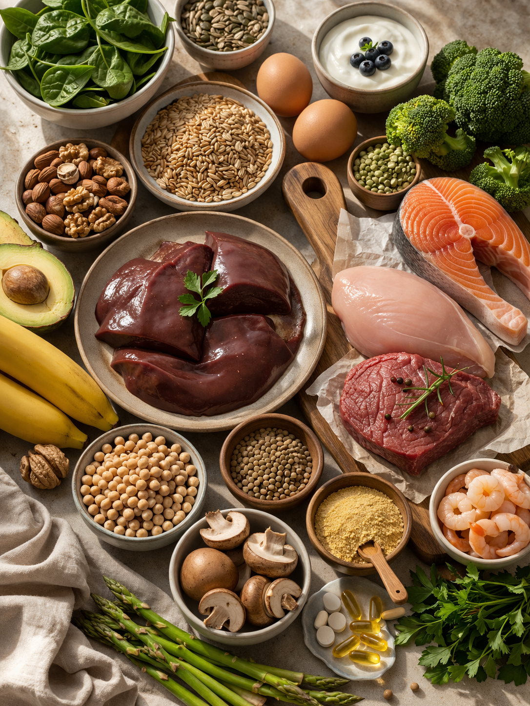 Fontos: a B-vitaminok pótlása nem egységes — az egyéni génvariációk (pl. MTHFR mutáció) befolyásolják, hogy a szervezet mennyire tudja hasznosítani a szintetikus folsavat. Érdemes metilált formákat keresni (metil-folát, metil-kobalamin).